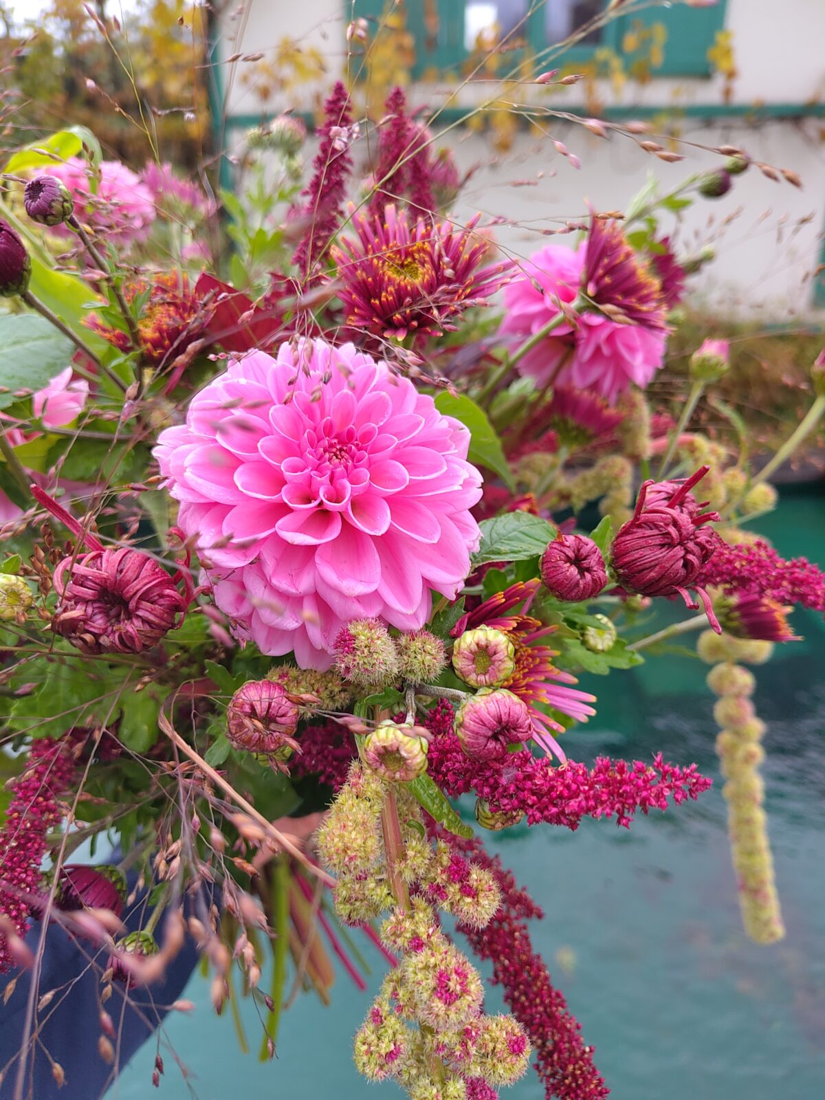 Mooie felroze , stevige bal dhalia. Niet te missen in jouw tuin!!