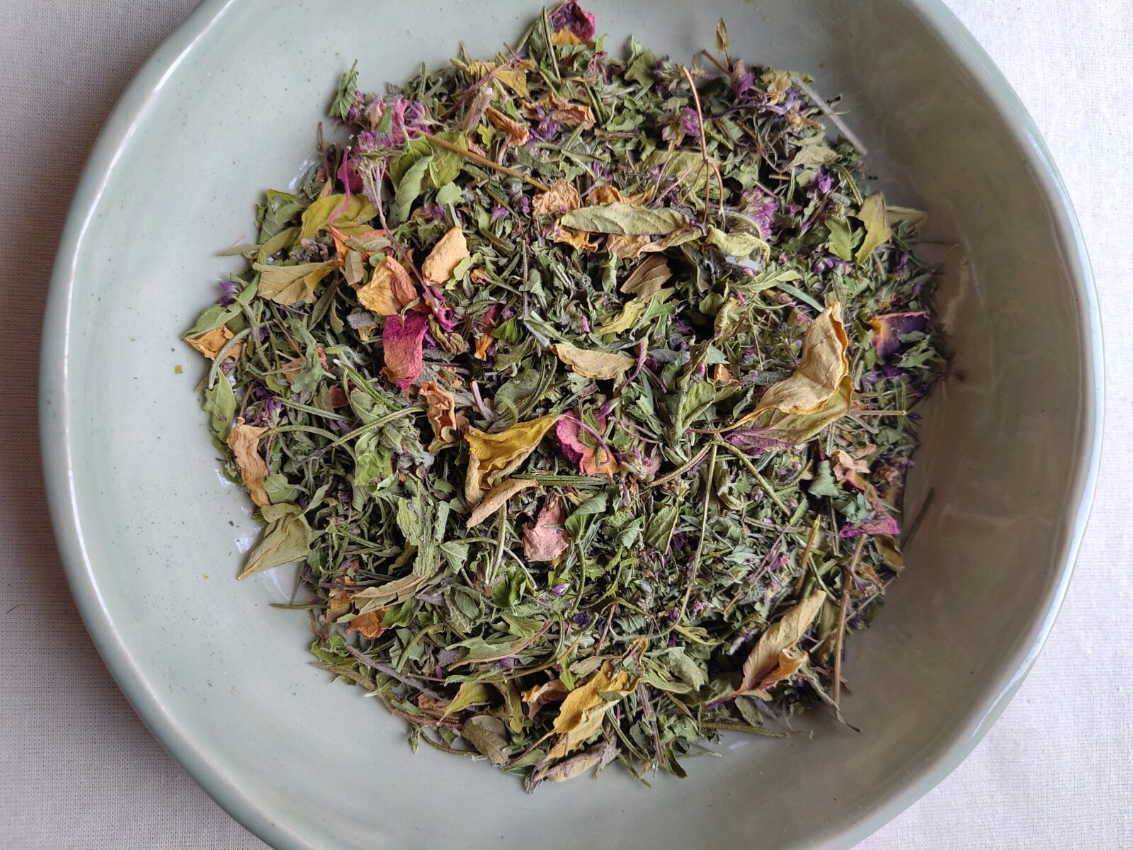 Bevat: rozemarijn, salie, tijm, bonenkruid, marjolein, rozenblaadjes, kaneelbasilicum en